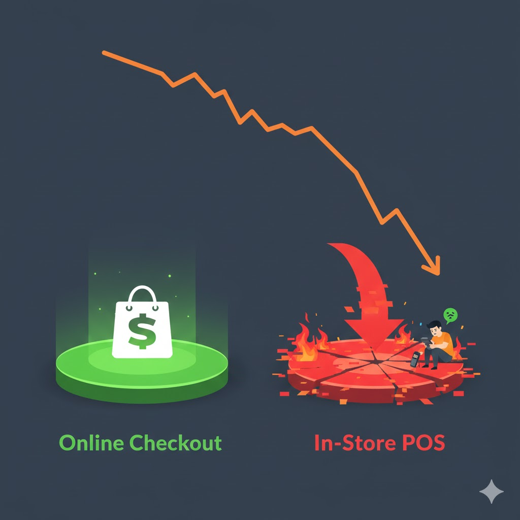 Plataforma de e-commerce relata problema de acesso para lojistas, afetando checkouts em lojas físicas; transações online permanecem normais.
