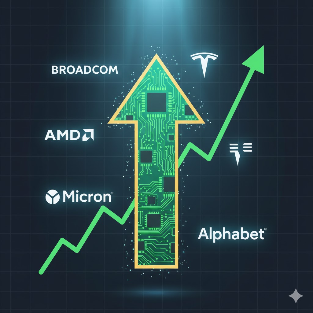 Broadcom, AMD, Micron, Tesla e Alphabet lideram alta que impulsionou Nasdaq em mais de 2,5%, sinalizando renovada confiança no setor.