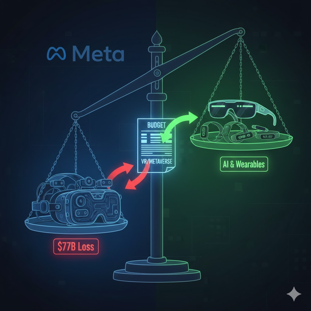 Remanejamento de orçamento para 2026 marca mudança estratégica; divisão Reality Labs acumulou perdas de US$ 77 bilhões desde 2020, enquanto a tecnologia imersiva não decolou.