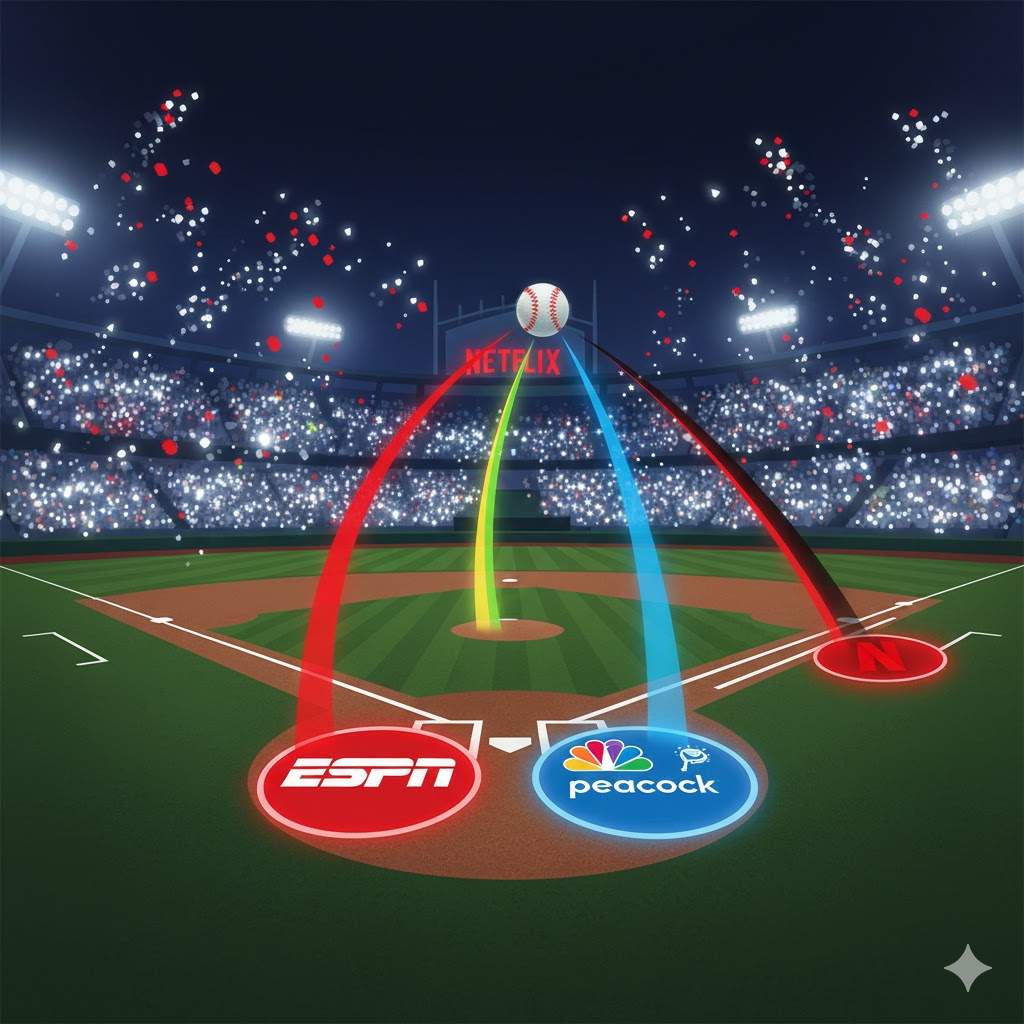 A MLB (Major League Baseball) concluiu uma nova estratégia de direitos de mídia, fechando acordos de três anos com a ESPN, a NBCUniversal e a Netflix. O movimento fragmenta os direitos entre os parceiros, cada um com um pacote específico. A Disney’s ESPN assumiu o acordo mais abrangente e caro, pagando cerca de US$ 550 milhões por ano por um pacote que inclui os direitos para vender e distribuir o serviço de streaming da liga, o MLB.TV, 30 jogos nacionais por temporada e mais. A NBCUniversal pagará aproximadamente US$ 200 milhões anuais para transmitir o “Sunday Night Baseball” e todas as quatro séries Wild Card do pós-temporada, além de jogos exclusivos em seu serviço de streaming, Peacock. A Netflix, em uma jogada inédita, garantiu os direitos para um único jogo: a partida de abertura da temporada, por cerca de US$ 50 milhões por ano, além de alguns outros eventos avulsos, marcando um passo significativo na transmissão de esportes ao vivo.