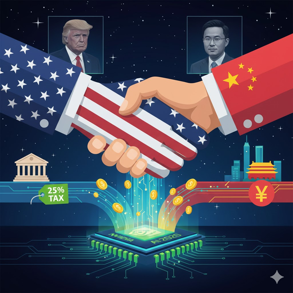 O presidente Trump afirmou que permitirá que a NVIDIA exporte seu chip H200 para a China e que os EUA receberão um corte de 25% da receita, em sua mais recente tentativa de gerar dinheiro para o governo através de um acordo incomum com uma empresa privada. O anúncio segue uma reunião na semana passada entre Trump e o CEO da NVIDIA, Jensen Huang, onde discutiram as exportações do H200. A medida é um alívio para a NVIDIA, que lutou por meses para manter o acesso à segunda maior economia do mundo, mas agora deverá compartilhar uma parte significativa dos lucros com o governo americano.