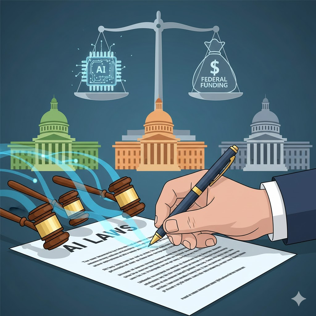 O Presidente Trump anunciou que assinará uma ordem executiva esta semana buscando punir estados que imponham leis consideradas restritivas para o desenvolvimento da inteligência artificial. A ação ocorre após o Congresso se recusar a avançar com uma medida similar como parte do último rascunho de uma lei de gastos militares. A ordem executiva, conforme relatado anteriormente, poderia autorizar o procurador-geral a contestar judicialmente leis de IA consideradas onerosas e a reter financiamento federal desses estados, possivelmente através de um programa federal de acesso à internet.